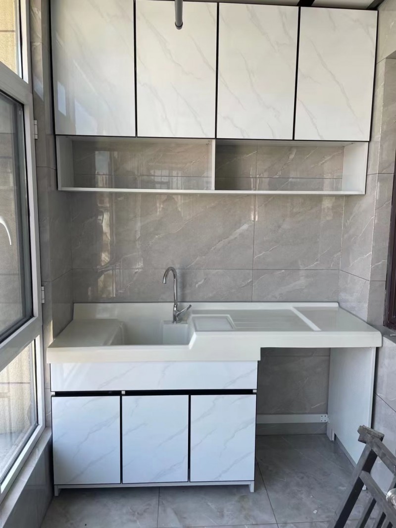 全铝洗衣柜、吊柜、浴室柜、厨柜门 石英石洗衣盆 岩板一体盆